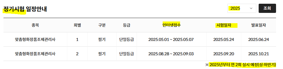 - 시험 과목 : 화장품 법규, 피부 과학, 맞춤형 화장품 조제 및 안전성