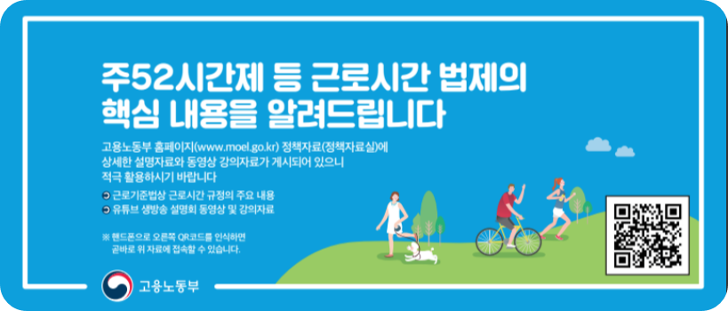 - 내용 : 법정 근로시간인 주 40시간에 최대 12시간의 연장근로를 포함하여 주 52시간을 초과할 수 없음