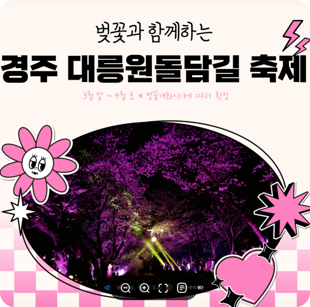 ✅ 소개 : 벚꽃과 대릉원돌담길에서 아름다운 경관을 배경으로 다양한 공연, 체험, 먹거리, 즐길 거리가 가득한 경주의 대표적인 축제입니다.