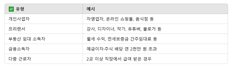 - 소득이나 사업이 단순한 소규모 사업자, 프리랜서 등